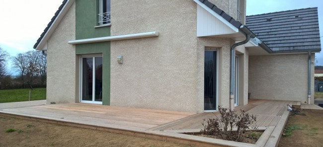 2015 – Terrasse bois en Mélèze de Sibérie sur terrasse en dalles existantes et réalisation d’une terrasse autoportée sur structure bois à Vy les Lure.