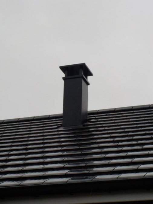 - Couverture en tuiles terre cuite plates ardoisées, zinguerie en prélaqué gris anthracite,