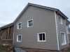 - Bardage fibro-ciment coloris vanille et brun atlas, encadrements de fenêtres blanc,